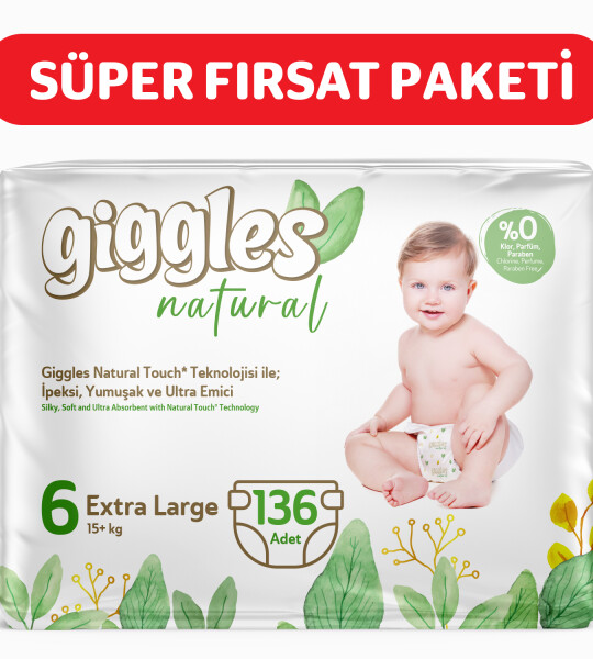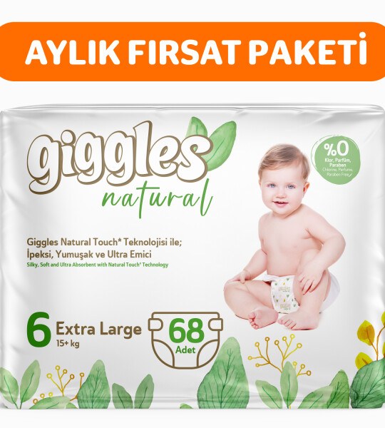 · Organik ve Doğal İçerikler: Giggles bebek bezi, organik pamuk ve doğal lifler içeren özel bir formülasyona sahiptir. Bu sayede bebeğinizin hassas cildiyle uyumlu bir şekilde çalışır.