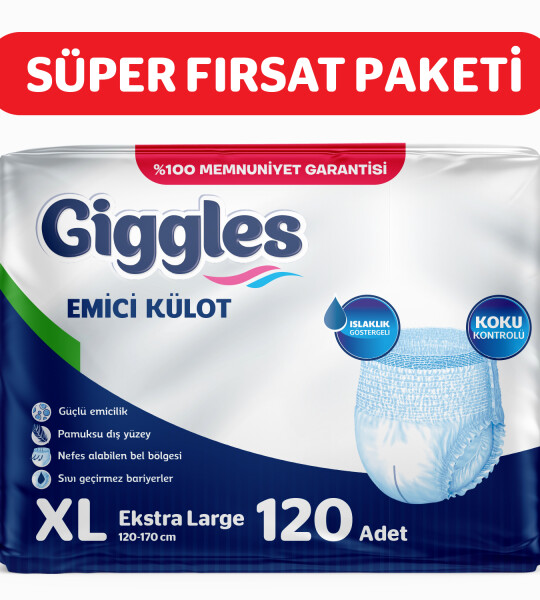 Giggles Yetişkin Emici Külot, istemsiz sıvı kaçırma sorunlarıyla başa çıkmanın en pratik ve güvenilir yoludur. Sıradan iç çamaşırları sıkıntılı anlarınızda size yeterli koruma sağlamazken, Giggles ile her anınızı rahat ve özgür geçirebilirsiniz.