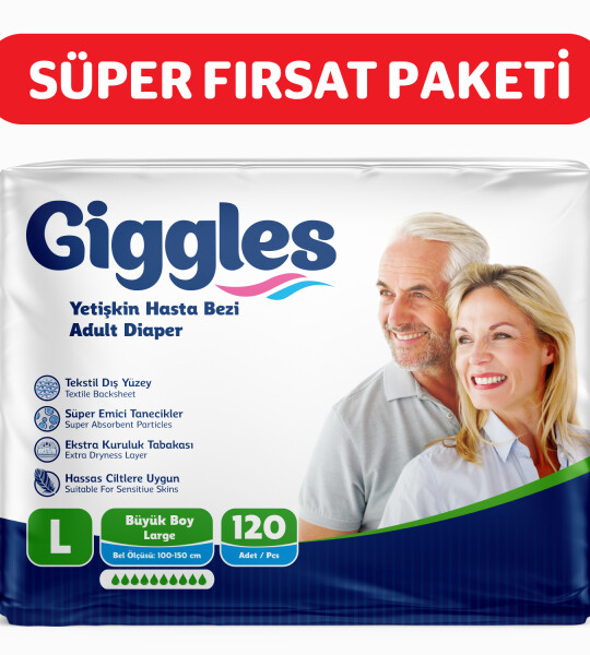 Giggles Yetişkin Bel Bağlamalı Hasta Bezi Large 30'lu 4 Paket 120 Adet