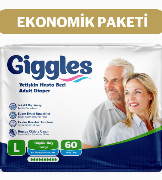 Giggles Yetişkin Bel Bağlamalı Hasta Bezi Large 30'lu 2 Paket 60 Adet