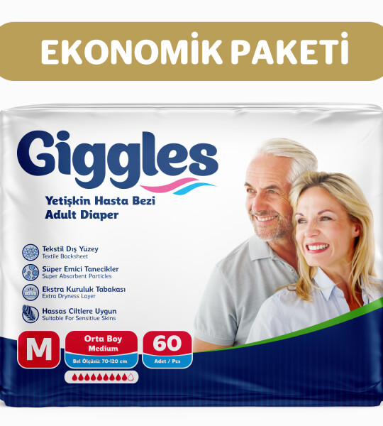 Giggles Yetişkin Bel Bağlamalı Hasta Bezi Medium 30'lu 2 Paket 60 Adet