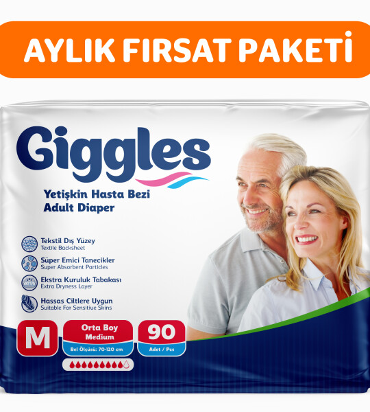 Giggles Yetişkin Bel Bağlamalı Hasta Bezi Medium 30'lu 3 Paket 90 Adet