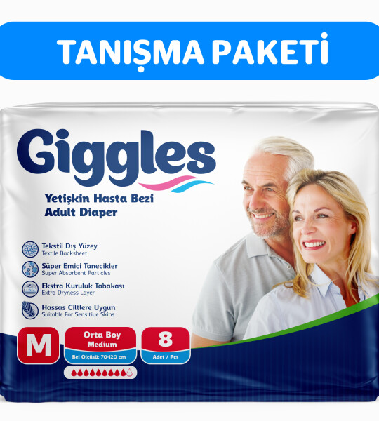 Giggles Yetişkin Bel Bağlamalı Hasta Bezi Medium 8'li 1 Paket 8 Adet