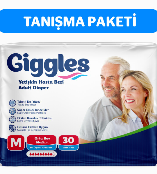 Giggles Yetişkin Bel Bağlamalı Hasta Bezi Medium 30'lu 1 Paket 30 Adet