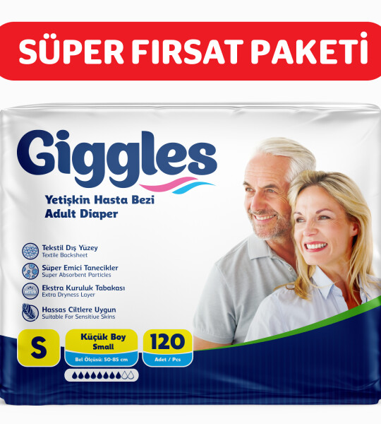 Giggles Yetişkin Bel Bağlamalı Hasta Bezi Small 30'lu 4 Paket 120 Adet