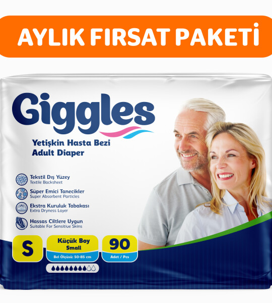 Giggles Yetişkin Bel Bağlamalı Hasta Bezi Small 30'lu 3 Paket 90 Adet