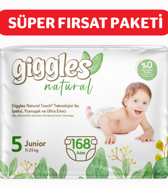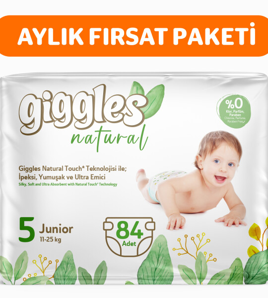 · Organik ve Doğal İçerikler: Giggles bebek bezi, organik pamuk ve doğal lifler içeren özel bir formülasyona sahiptir. Bu sayede bebeğinizin hassas cildiyle uyumlu bir şekilde çalışır.