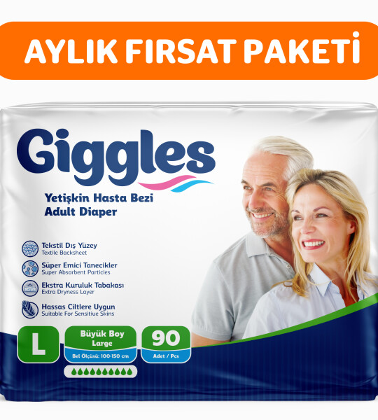 Giggles Yetişkin Bel Bağlamalı Hasta Bezi Large 30'lu 3 Paket 90 Adet