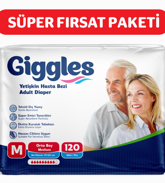 Giggles Yetişkin Bel Bağlamalı Hasta Bezi Medium 30'lu 4 Paket 120 Adet