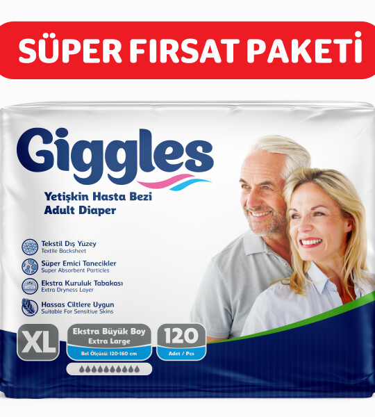 Giggles Yetişkin Bel Bağlamalı Hasta Bezi ExtraLarge 30'lu 4 Paket 120 Adet