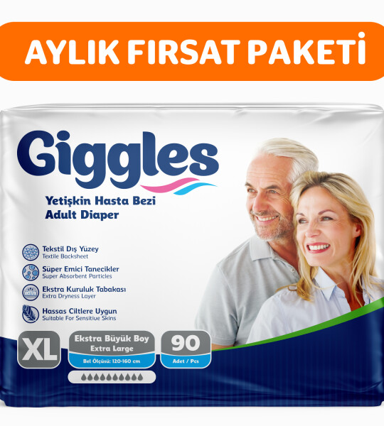 Giggles Yetişkin Bel Bağlamalı Hasta Bezi ExtraLarge 30'lu 2 Paket 60 Adet