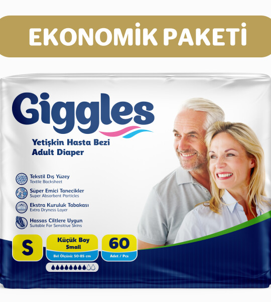 Giggles Yetişkin Bel Bağlamalı Hasta Bezi Small 30'lu 2 Paket 60 Adet