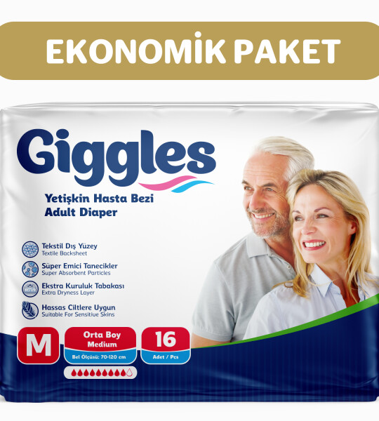 Giggles Yetişkin Bel Bağlamalı Hasta Bezi Medium 8'li 2 Paket 16 Adet